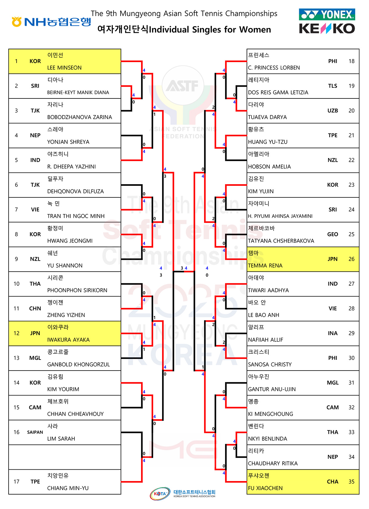 - 女子シングルス : キム・ジヨン(韓国)