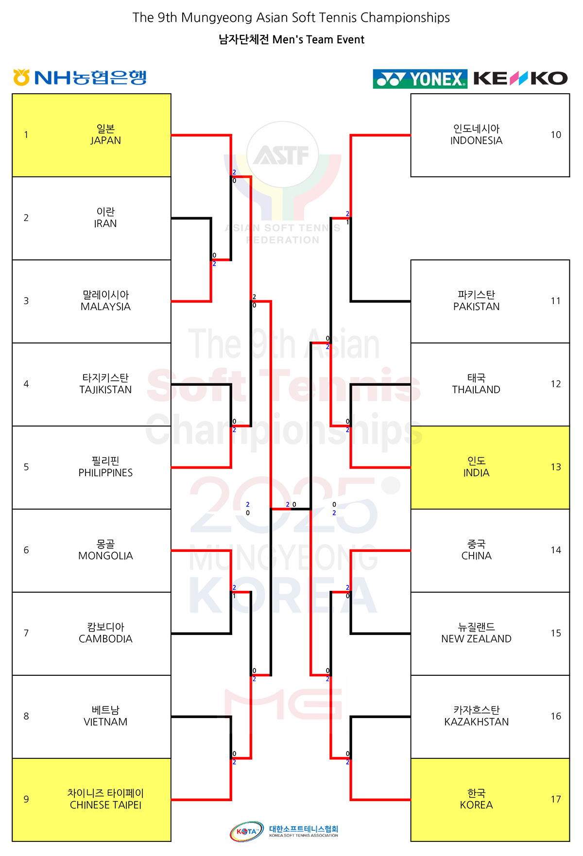 - 男子団体 : 韓国