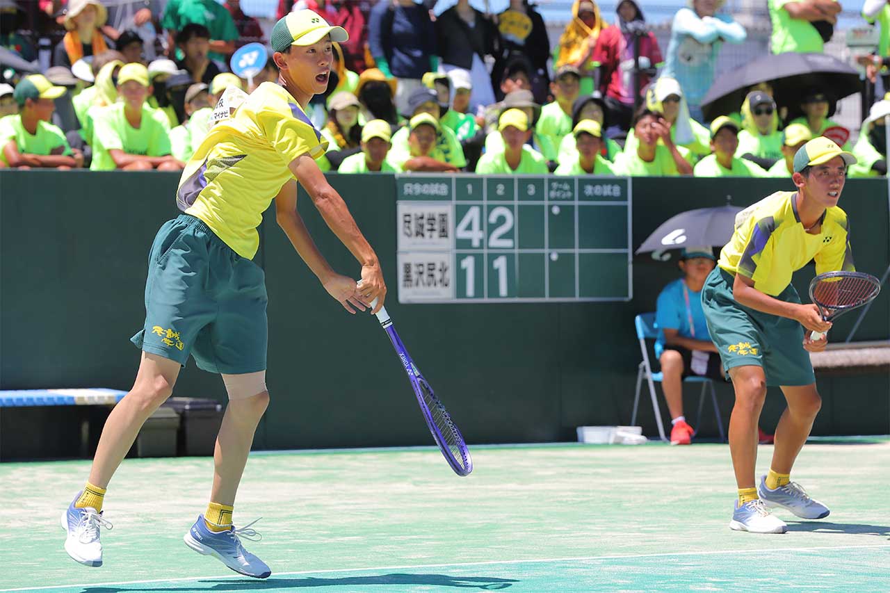 第1シード尽誠学園は、昨日までの個人戦でベスト4のうち3ペアを占めるなど勢いがあり、2年ぶりの王者奪還を目指す。