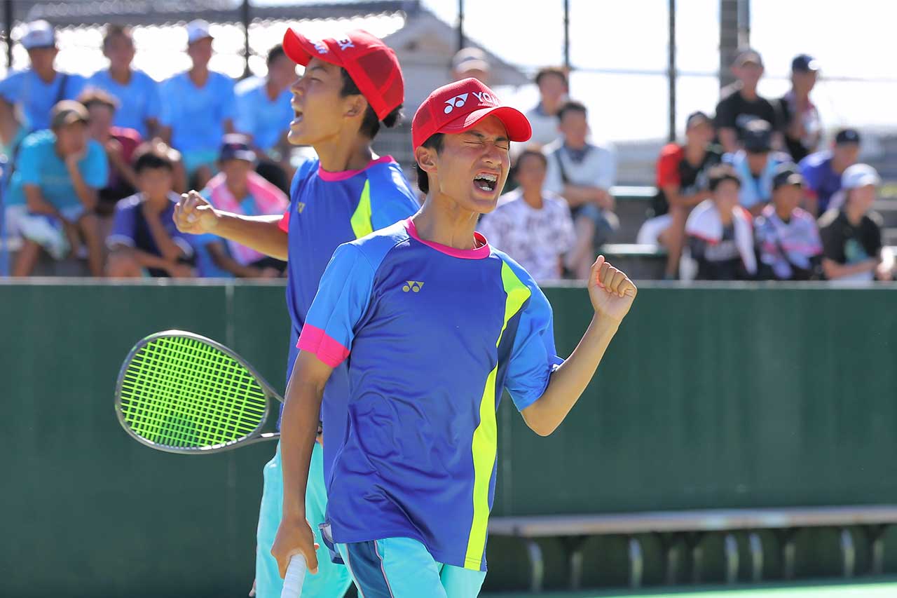 「ただただ嬉しいです。やってやりました。厳しい場面でも練習してきたことが出せました。1年生から3年生まで上下関係なく本当に仲がいいチームなのでチームワークの勝利です。(1年生の塚本とはペアを組んでまだ短いが)誰とペアを組んでも戦える最高のチームです。最後も難しい試合だったが、塚本とずっと『日本一獲ろう』って話をして戦いました。国スポも勝って二冠できるように頑張ります」